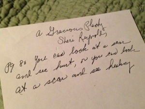 This slipped out of one of the many little journals today. We both loved this book. I believe this, like most Elaine-isms, found its way to me on this particular day for a reason. I guess she will keep reaching out and being a mom.