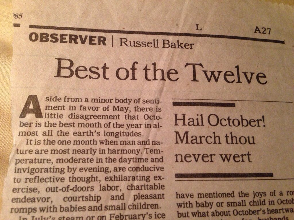 This one popped out of yet another folder of clippings today. The article lists all the reasons why October is the best month of all.